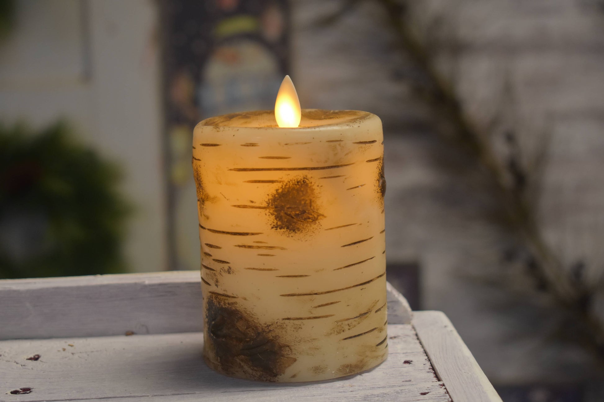 Birch Pillar Candle Moving Flame 3x4in