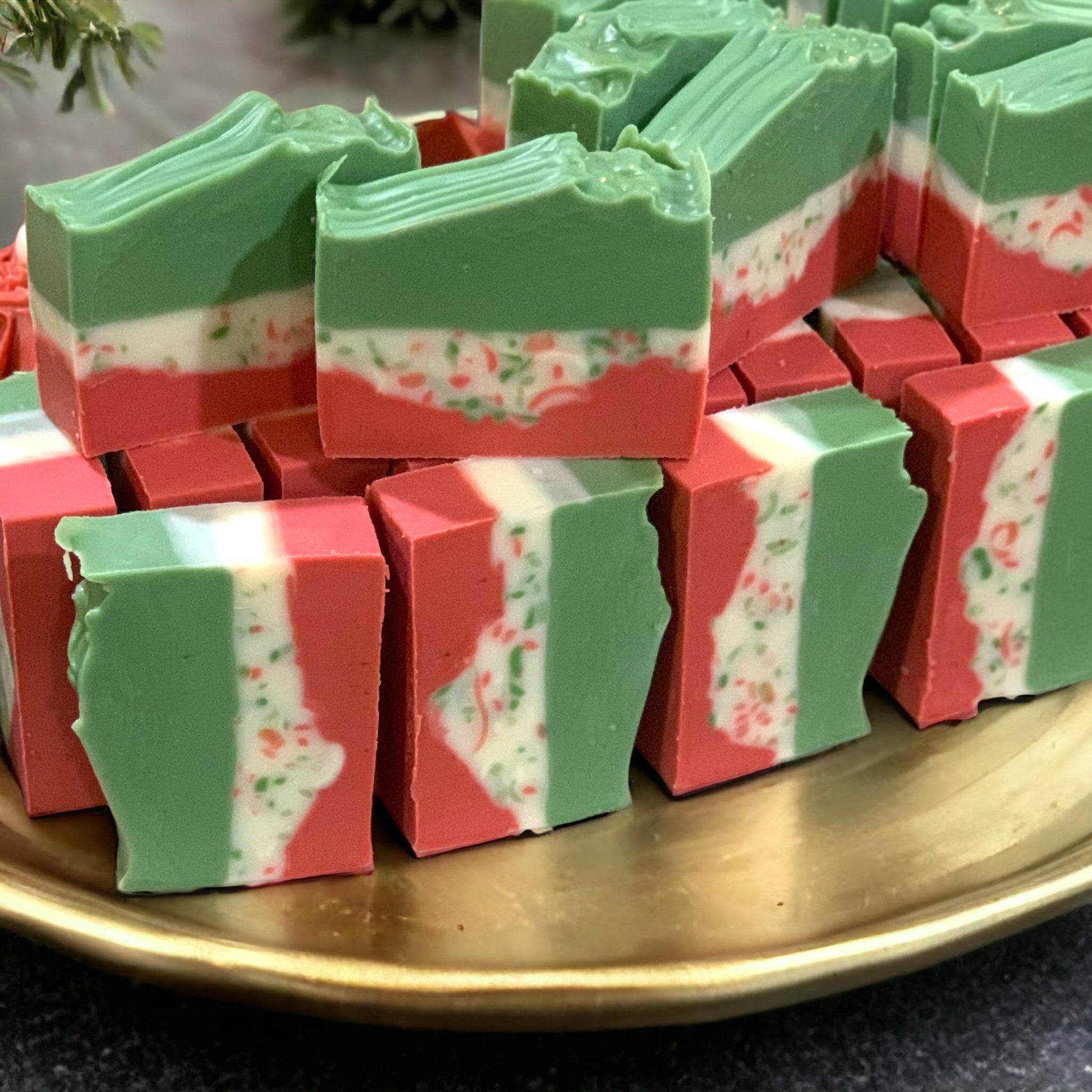 🎄 Playful, peppermint, and made to stand out — our Elf Stockings Soap is a festive bestseller! This handcrafted cold process soap features cheerful red and green layers with a sprinkle of candy cane magic inside. The scent? A cool burst of peppermint and sugary sweetness, inspired by classic candy canes. 🧼 A perfect for stocking stuffers, and whimsical winter gift sets. ✨ • Bold holiday colors + candy cane aesthetic • Crisp, cheerful scent with broad appeal •