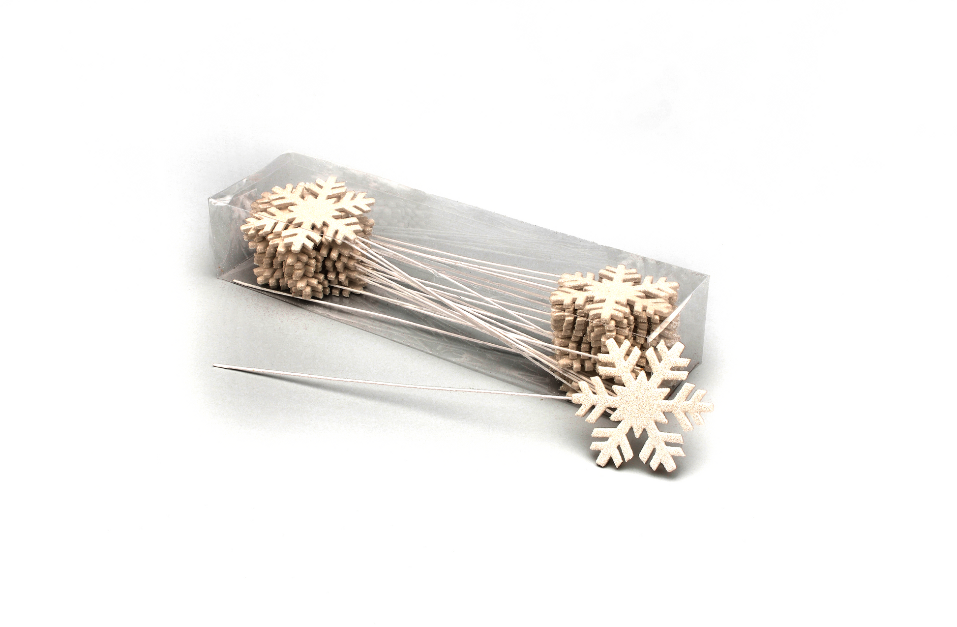 Iridescent White Glittery Snowflake Picks - 4.5"D 16"L